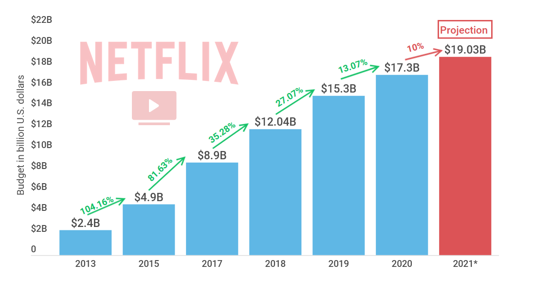 Dépenses de productions originales de Netflix sur 7 ans, dont prévisions 2021, Bankr Publié le 20 novembre 2021 à 1097 × 579 dans Dépenses de productions originales de Netflix sur 7 ans, dont prévisions 2021, Bankr