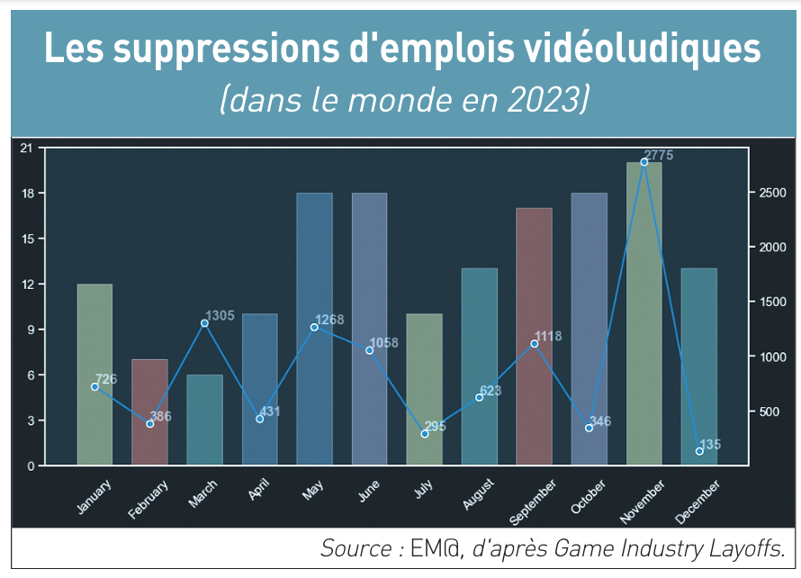 Après l’euphorique vidéoludique des années pandémiques, l’industrie mondiale du jeu vidéo a du mal à se remettre de la correction qui s’en est suivie. Certes, il y a eu une très légère croissance en 2023 : + 0,6 %, à 184 milliards de dollars de chiffre d’affaires global, selon le cabinet d’étude Newzoo. Mais elle constitue un redressement significatif par rapport au net recul constaté l’année précédente : – 5,1 %, à 182,9 milliards de dollars, par rapport aux 192,7 milliards de dollars de l’année pandémique 2021. Si les revenus sont à la peine, le nombre de joueurs en ligne, lui, ne cesse de progresser pour dépasser en 2023 les 3,3 milliards sur toute la planète (voir graphiques ci-dessous).